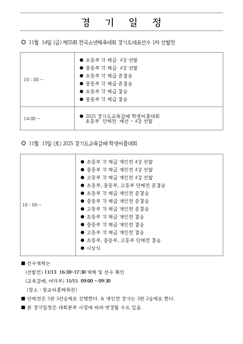 (경기일정)2025 경기도교육감배 학생씨름대회 겸 제55회 전국소년체육대회 경기도대표선수 1차 선발전