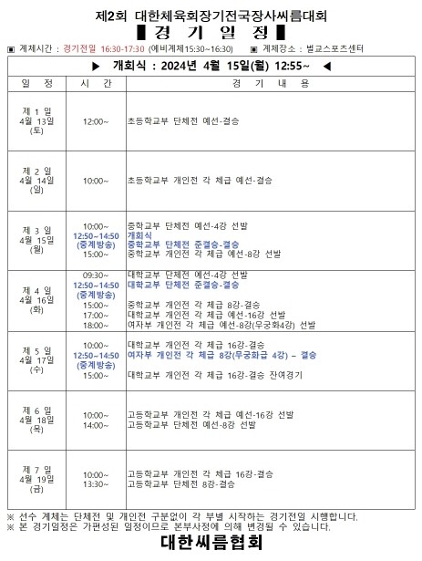 - 제2회 대한체육회장기 대진표.pdf (5.3M) 1회 다운로드 | DATE : 2024-04-15 14:29:27