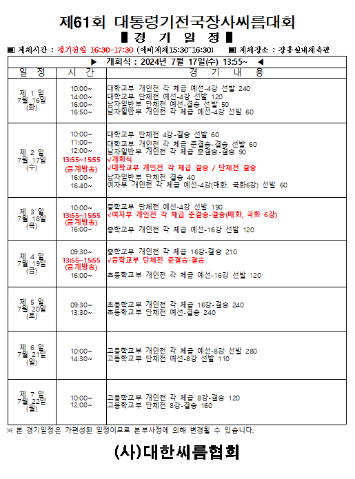 - 제61회 대통령기 대진표.pdf (6.0M) 1회 다운로드 | DATE : 2024-07-11 09:19:12