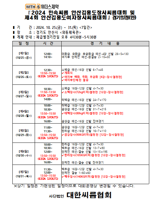 위더스제약 2024 민속씨름 안산김홍도장사씨름대회 및 제4회 안산김홍도여자장사씨름대회